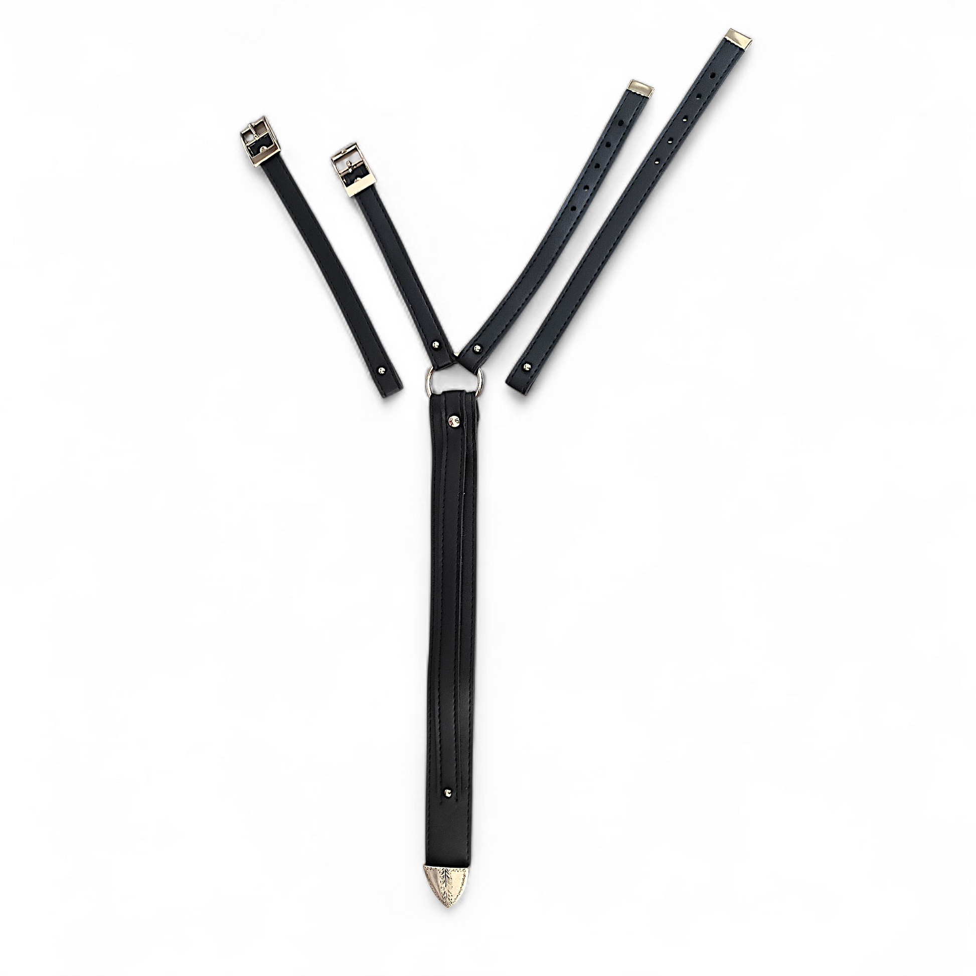 Aucune matière d'origine animale n'est utilisée. Les sangles sont en simili cuir et les colliers sont en acier inoxydable.